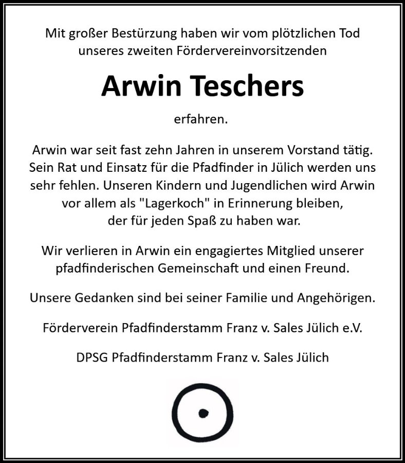 Unsere Gedanken sind in dieser schweren Stunde bei seiner Familie.
