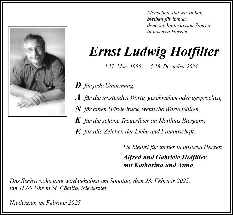 Haltet stets die Erinnerung an die schöne Zeit mit ihm im Gedächtnis, so wird er immer bei euch sein.