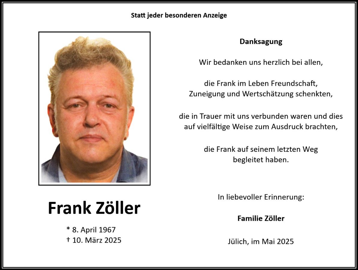 Frank Zöllergestorben am 10. März 2025