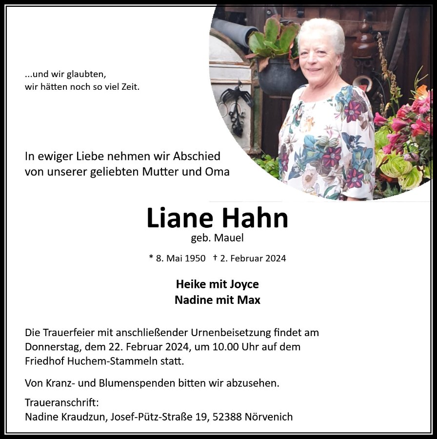 Liane Hahngestorben am 2. Februar 2024
