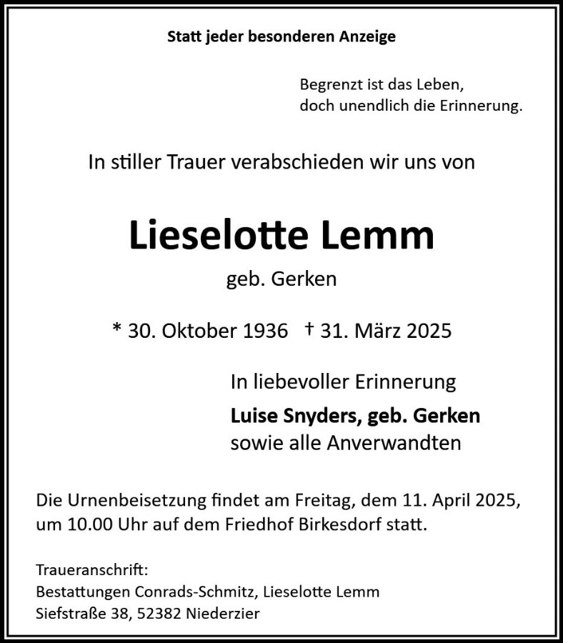 Trauerfeier mit anschließender Beisetzung, Friedhof Birkesdorf