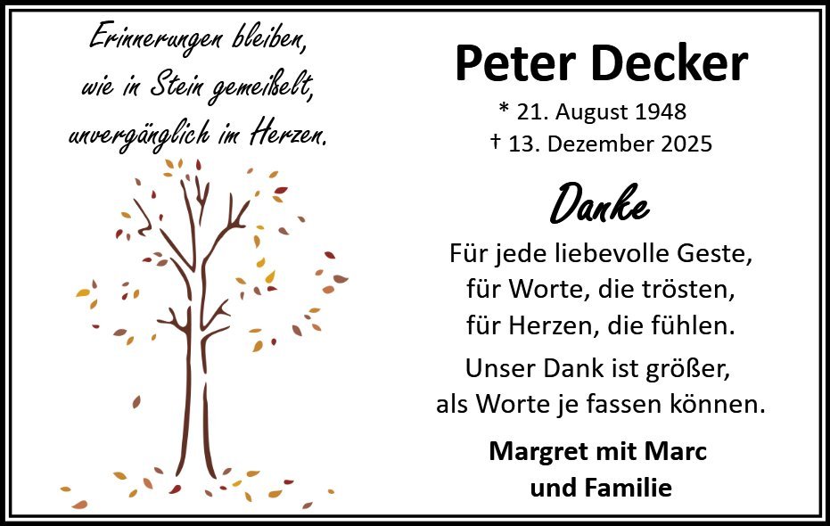 Peter Deckergestorben am 13. Dezember 2025