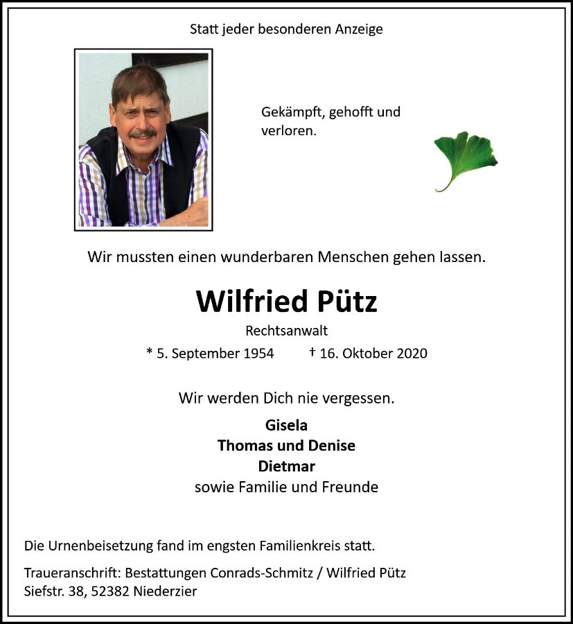 Ich wünsche Ihnen ganz viel Kraft die traurige Zeit zu überstehen. In den Stunden des Abschiedes voll Trauer und Schmerz sind meine Gedanken bei Ihnen und den Angehörigen.